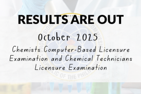 The results of the October 2025 Chemists Computer-Based Licensure Examination and Chemical Technicians Licensure Examination will be released within five working days.
